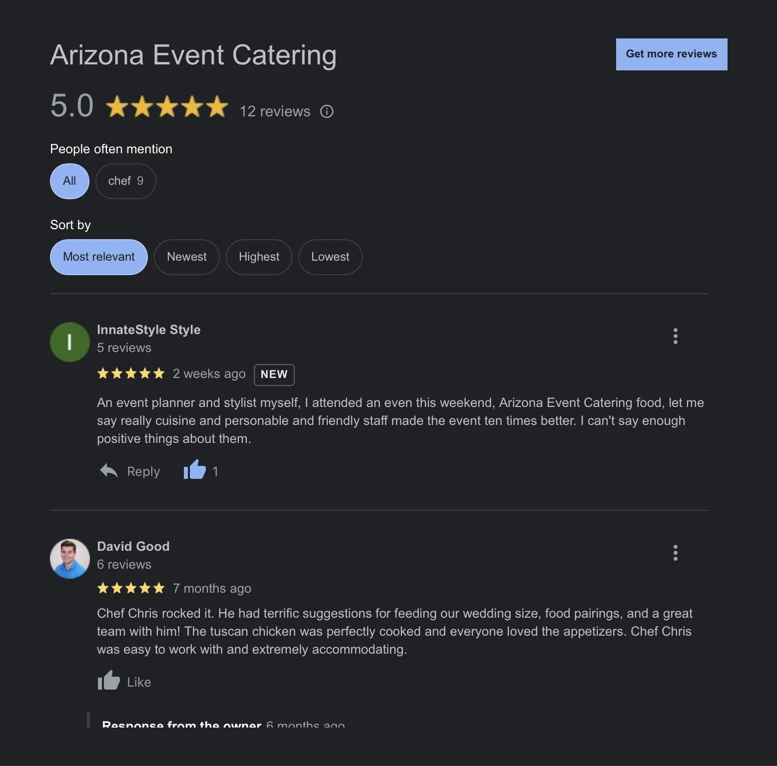 Dinner MenusCheck out some of our tiered caring menus
